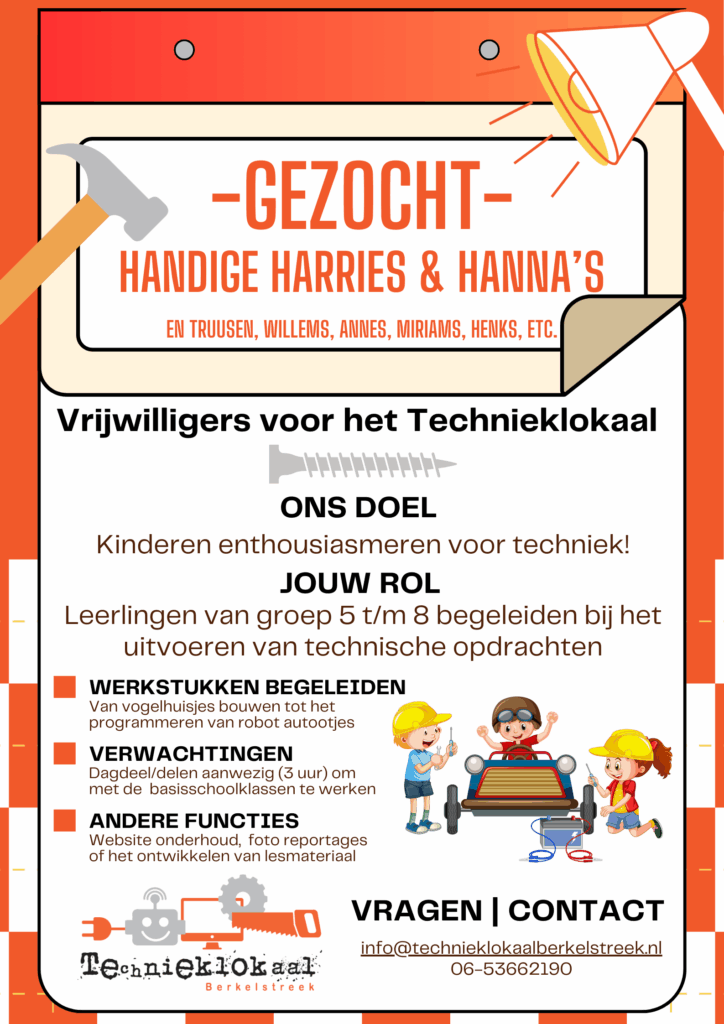 Heb je affiniteit met techniek en vind je het leuk om met kinderen te werken? Dan zijn wij op zoek naar jou!